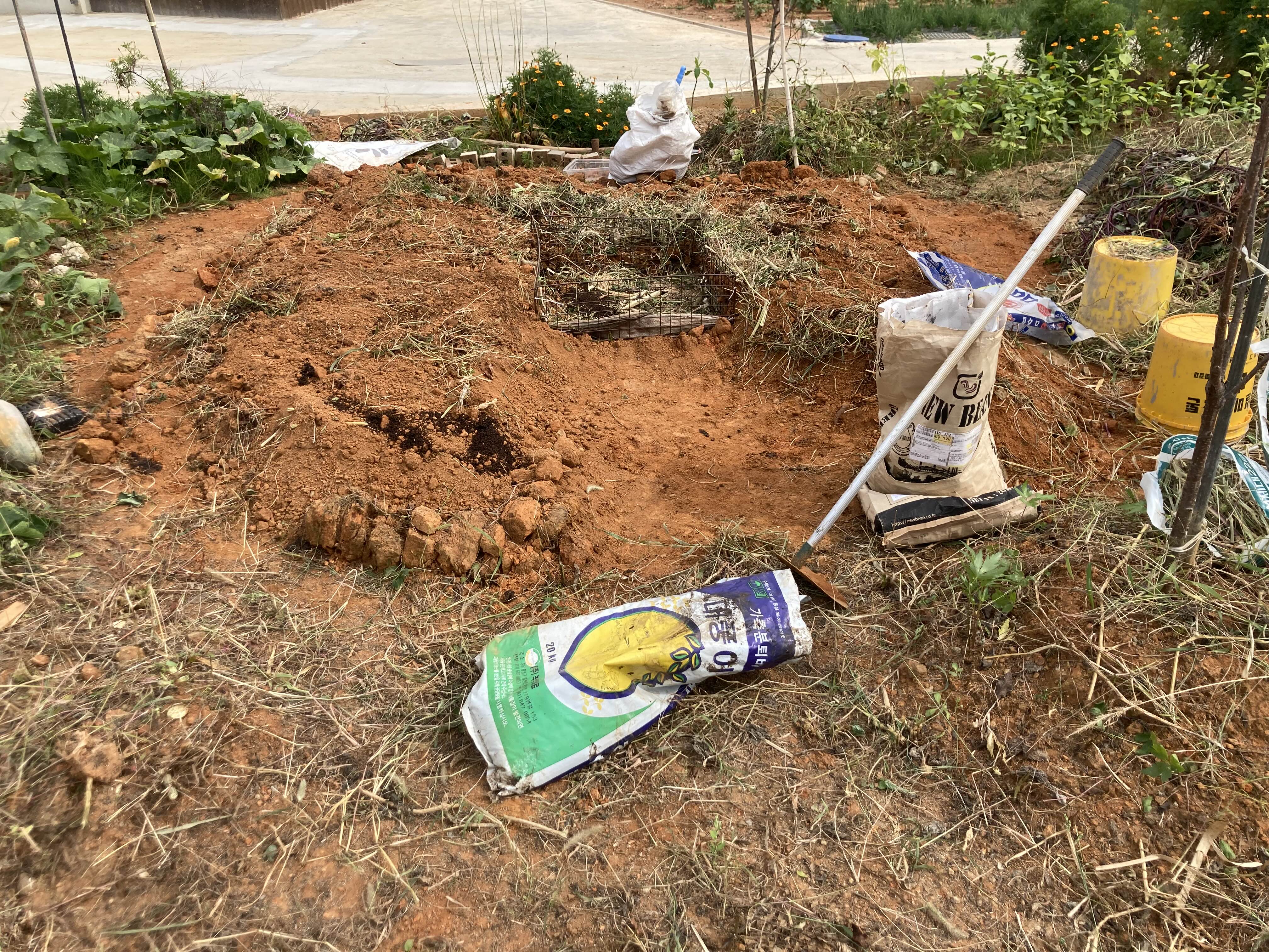 두둑 만들때 약간의 우분과 자른 풀,커피가루를 섞어두었다 내년 늦봄엔 잘 발효되길 바라면서 ㅎㅎ