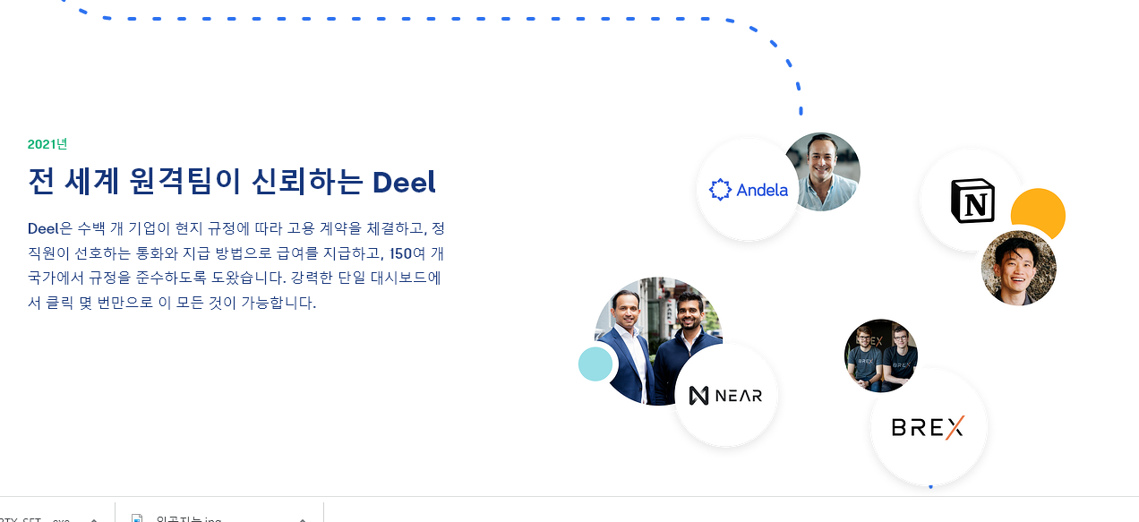 사진에서도 보이다시피 Deel 닷컴은 주소가 deel.com으로 변경되었습니다. 이 사이트는 고용계약을 위한 전반적인 과정을 대행해주는 플랫폼 사이트입니다. 계약서 온보딩, 급여지급 등과 같은 서비스를 제공합니다.