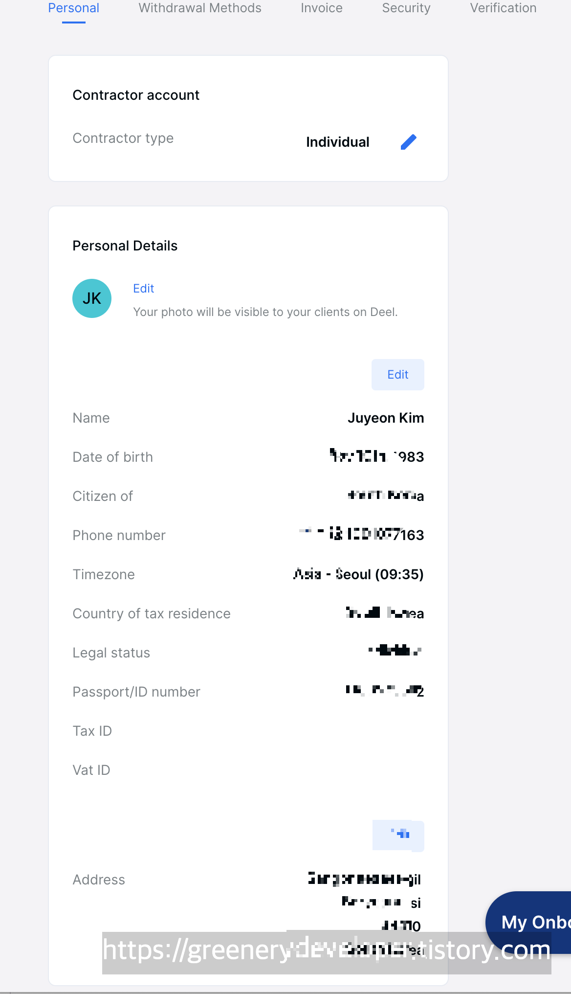 전세계 사람들을 대상으로 고용계약이나 급여지급이 가능하려면 웹사이트 가입 후 '신원확인'이라는 절차를 진행해야합니다. 참, 한국인을 위한 한국어 사이트도 제공됩니다. https://www.deel.com/ko-kr/