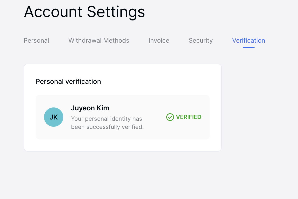 - Verification tab of Deel profile (프로필 내용 중 Verification tab 부분) screenshot