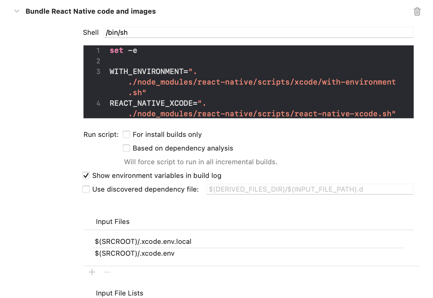 General- > Build phases -> Bundle React Native code and images 선택