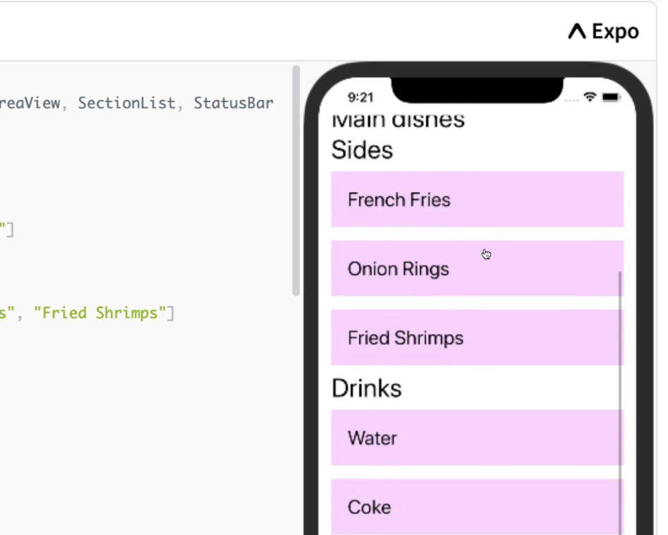FlatList 는 lazy Rander 방식으로 화면에 나타나기 직전에 렌더링을 하는 특징이 있다. 무한 스크롤을 구현할 때 퍼포먼스가 좋다. 만약 Section을 갖는 리스트를 구현하고자 한다면, <Section List>라는 것이 매우 유용하며 IOS와 Android에서 자주 사용하는 패턴을 쉽게 렌더링 할 수 있게 해준다.