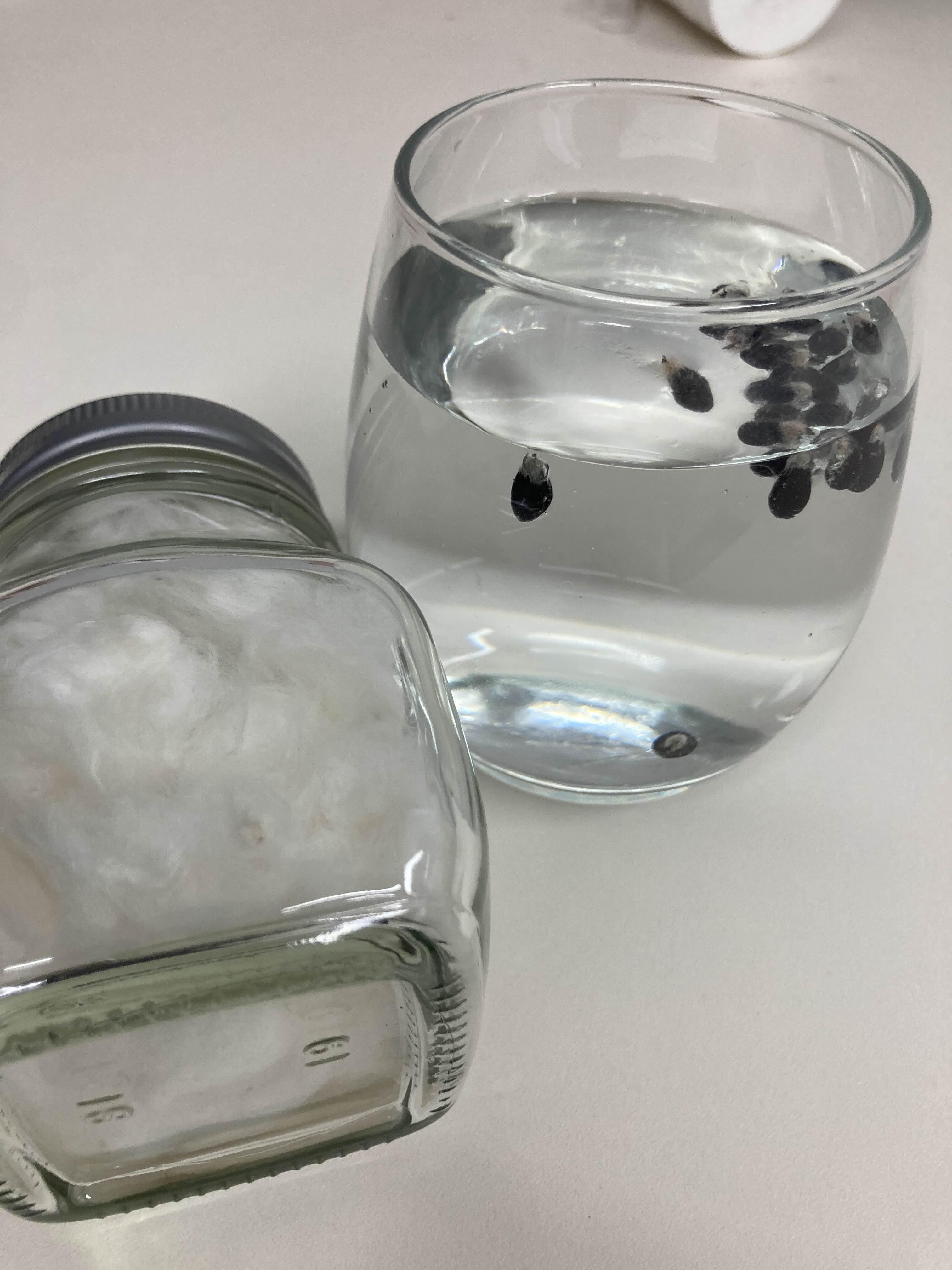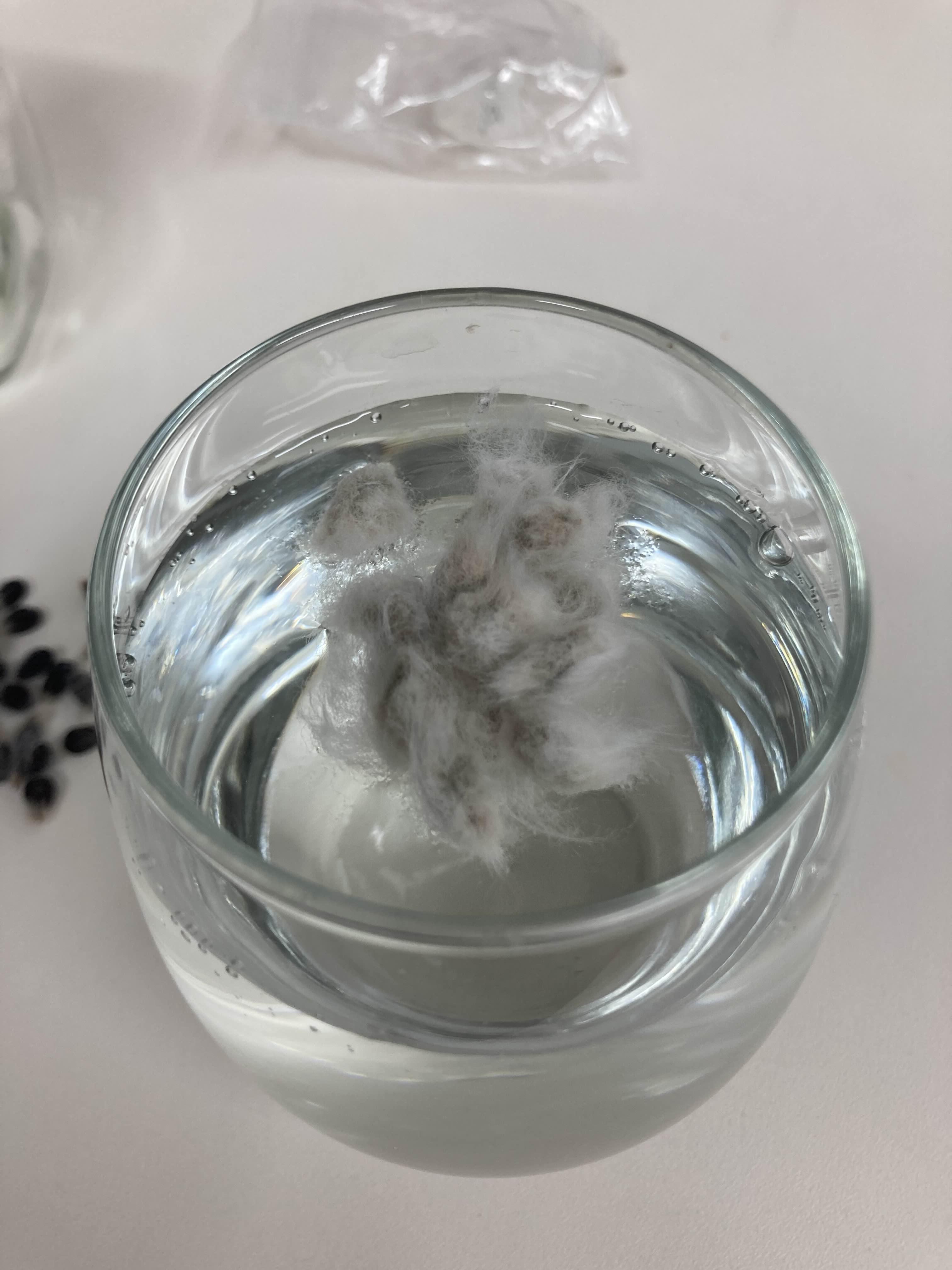 채종한 씨앗의 모습. 물에 가라앉아야 싹이 난다고 한다. 테스트를 위해 씨앗 목화 그외의 것을 분리해뒀다.