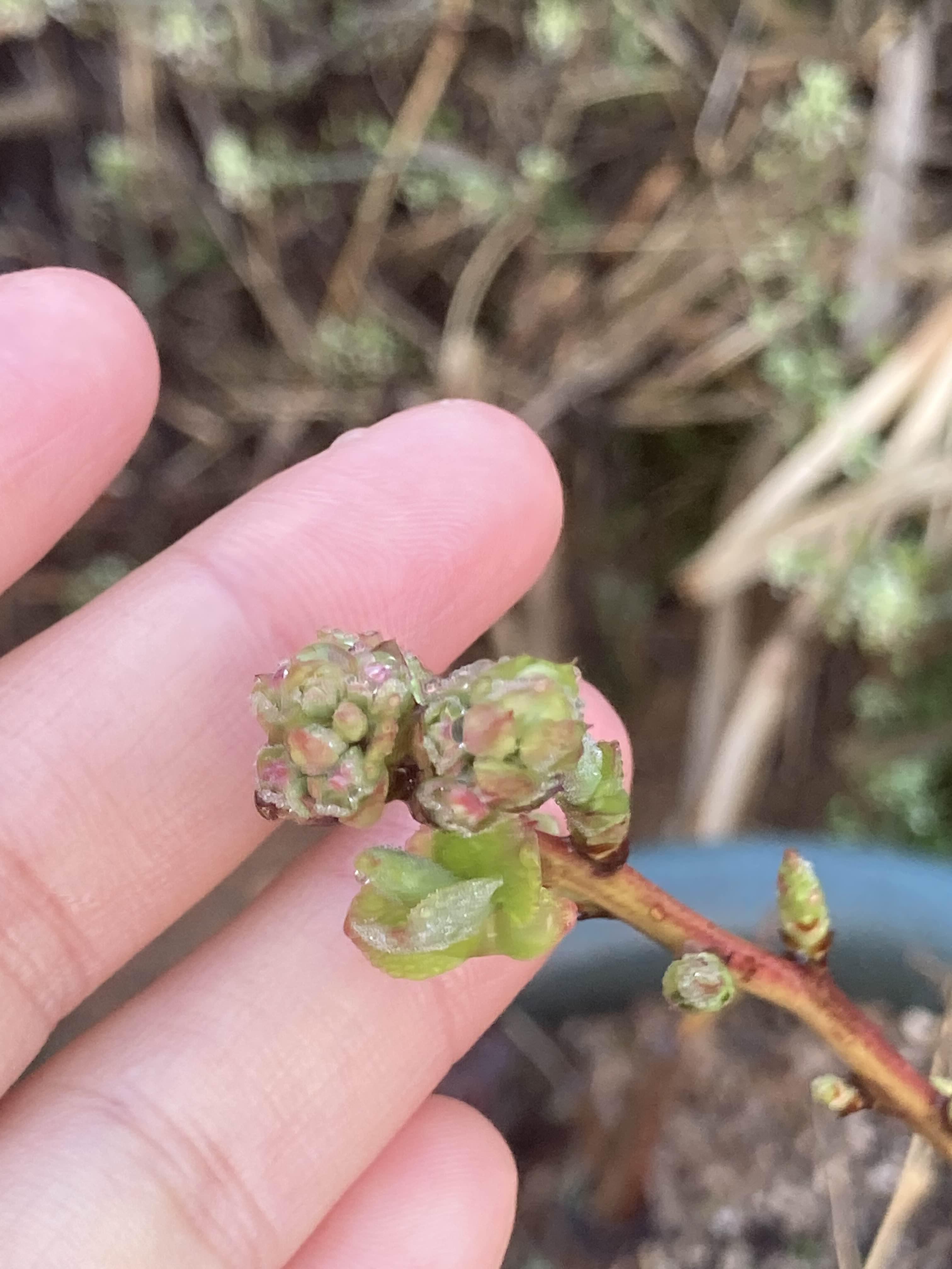 블루베리 나무에 꽃봉오리가 생겼습니다. 신기하네요 열매가 달린 모습만 보다가 새순과 꽃봉오리는 신기합니다.