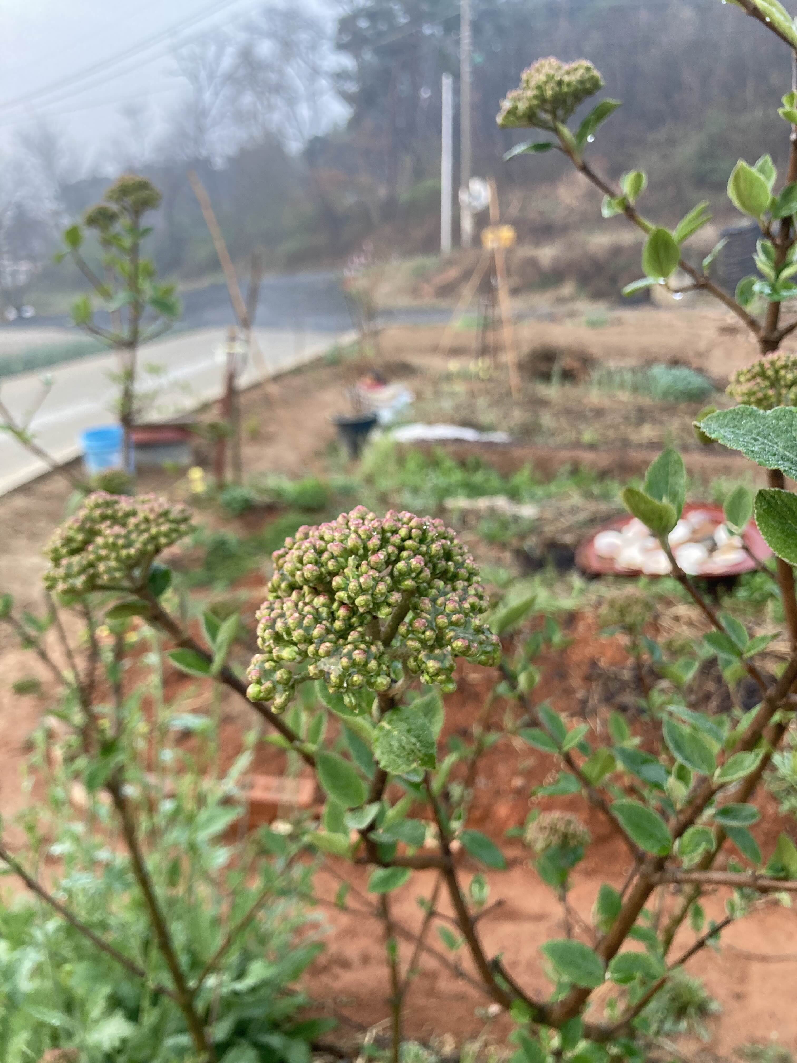 가장 먼저 기대되는 마음으로 유럽분꽃에게 갑니다. 분명 작년에 맡아보았던 그 이세계같은 향기와 부유한 꽃몽오리가 떠올라 두근근합니다. 꽃이 피기 전부터 설렘을 주는 꽃나무은 이 나무가 처음입니다.