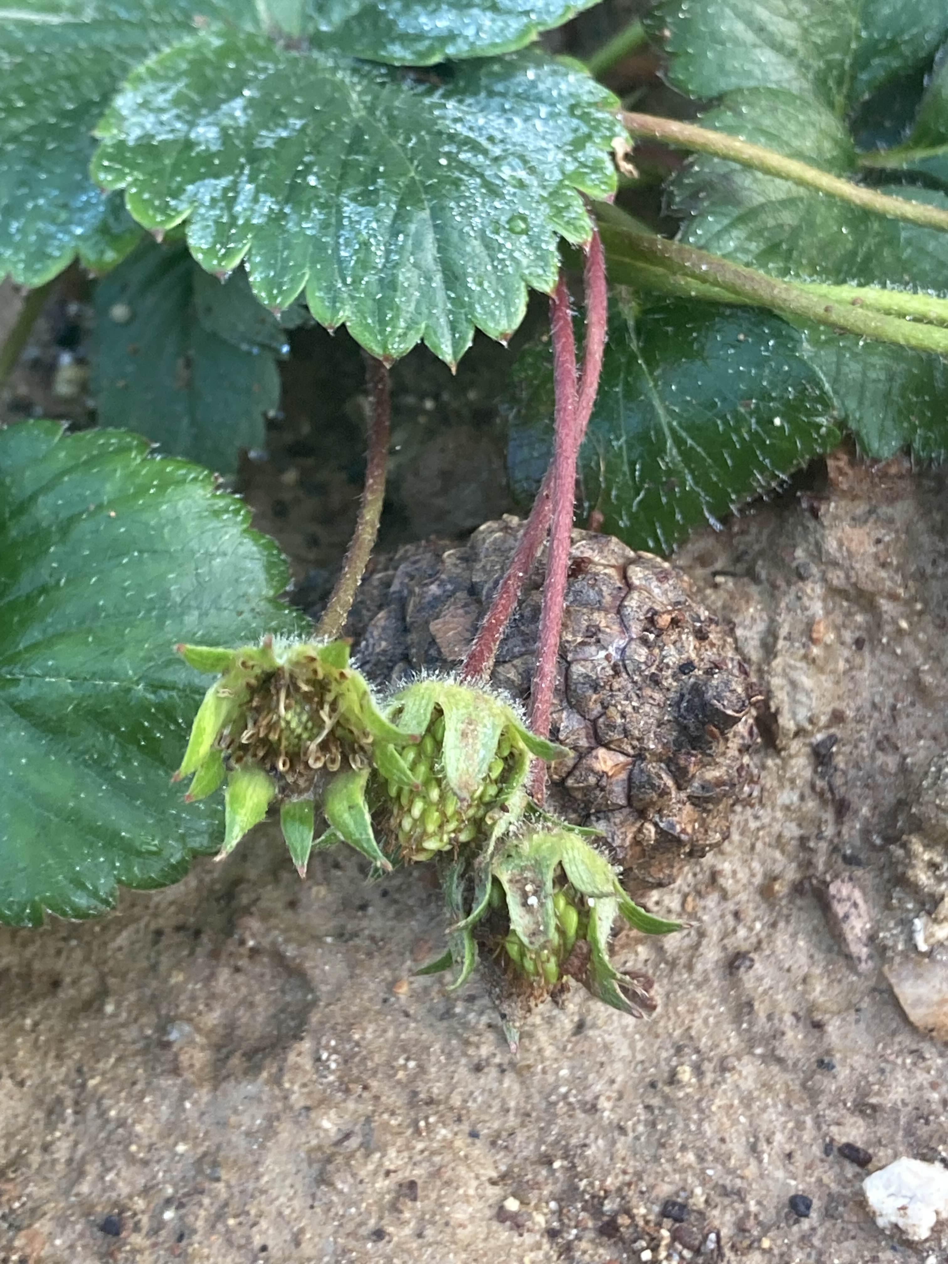 딸기가 열렸다고 아빠가 알려주셨습니다. 저는 ‘아..꽃잎이 떨어져버렸네,,’하고 아쉬워만 하고있었습니다.