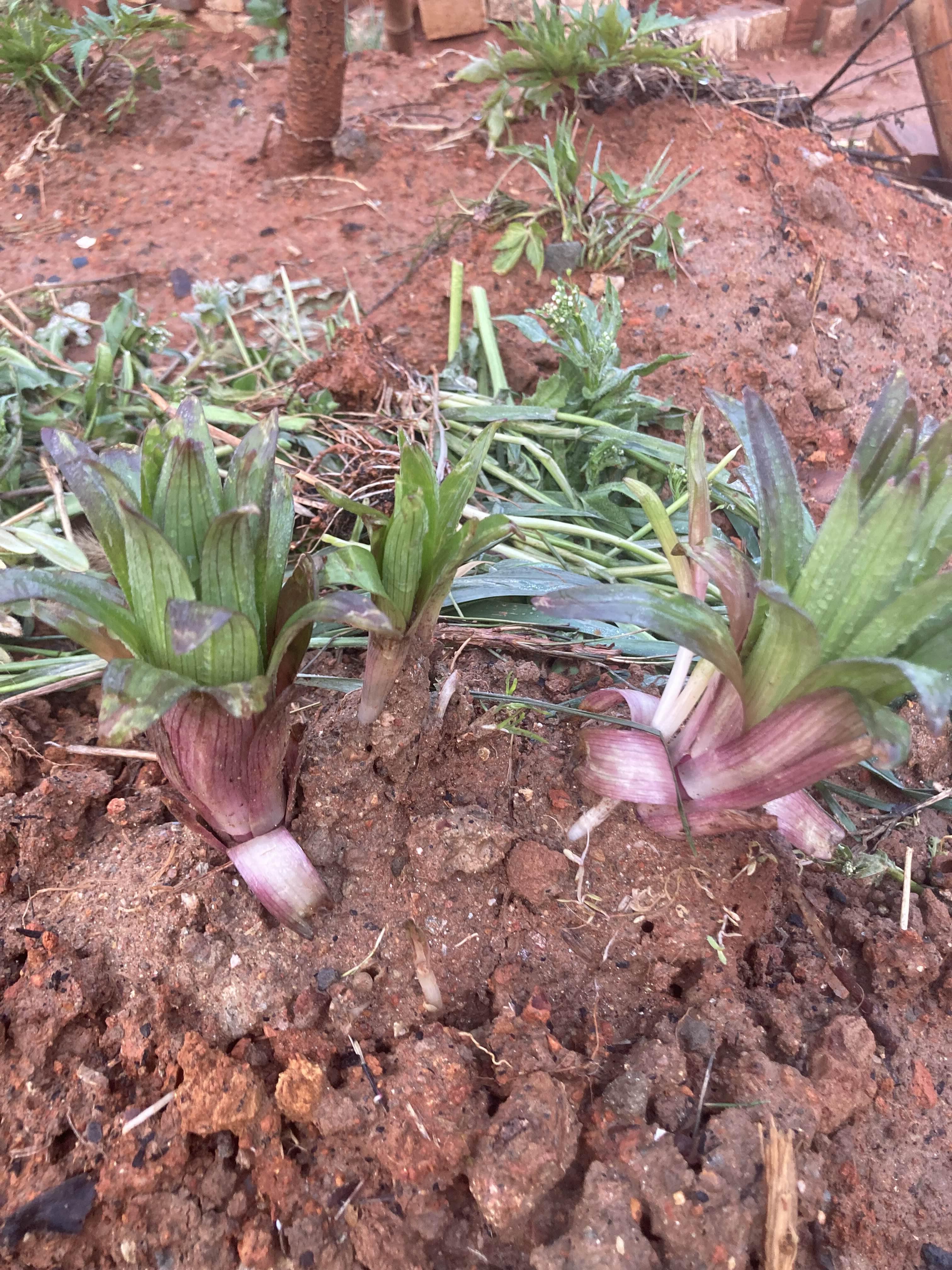 겨울을 나고 땅속에서 뚫고나온 새순이 몇종류 있습니다 이건 무엇의 새순일까?..