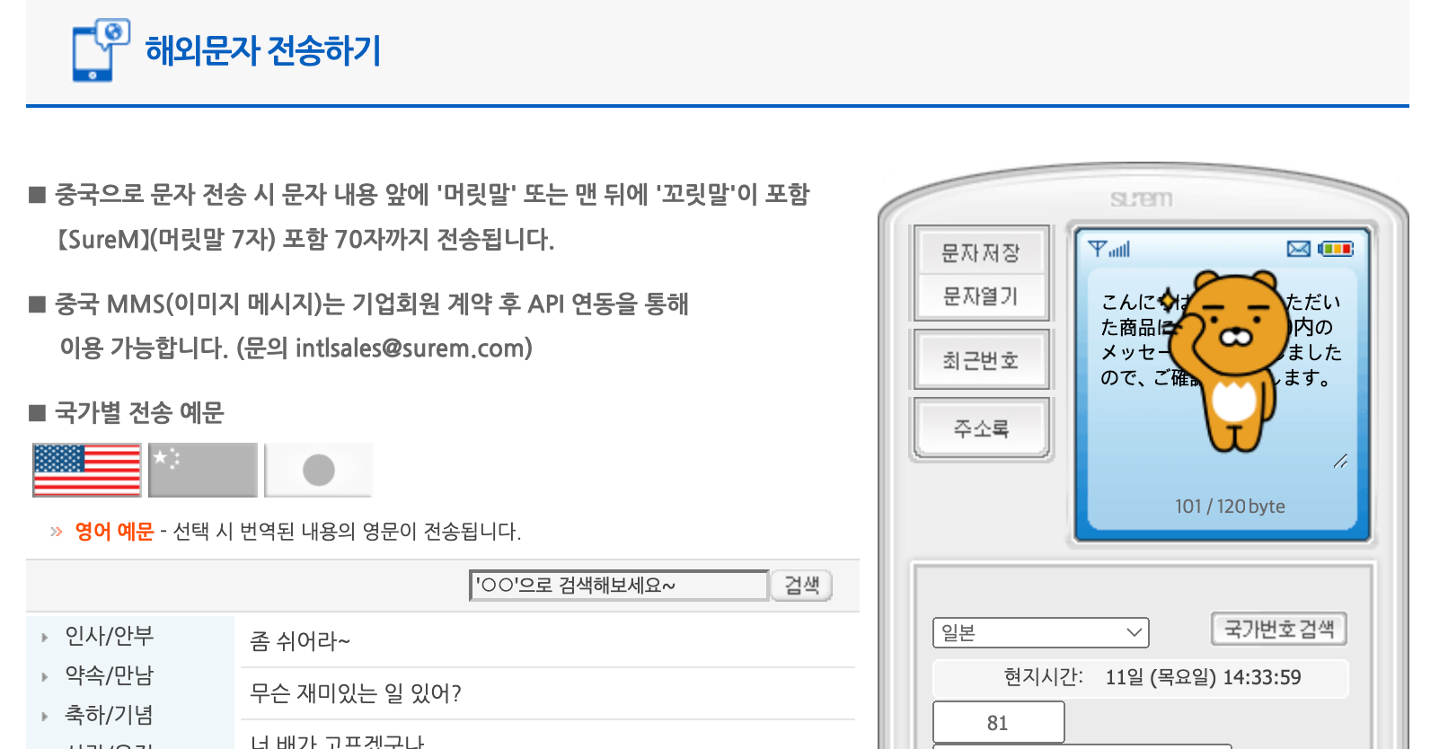 일본 고객에게 배송지연의 건으로 문자를 보내보자 하여, 일본으로 문자를 보내봤습니다. 혹시나 개인적인 또는 저처럼 사업상 필요하신 분들께 도움이 되었으면 좋겠습니다.