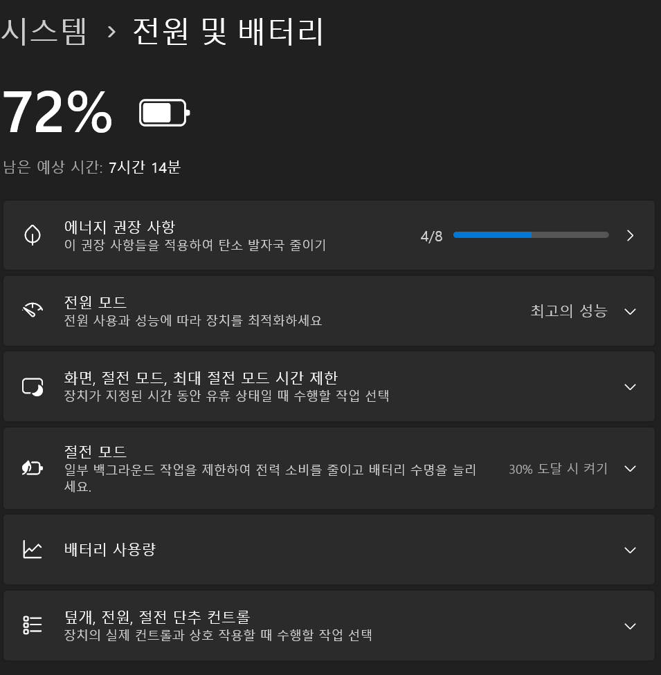 ⚙️ 제어판 → 전원 옵션 → "고성능"