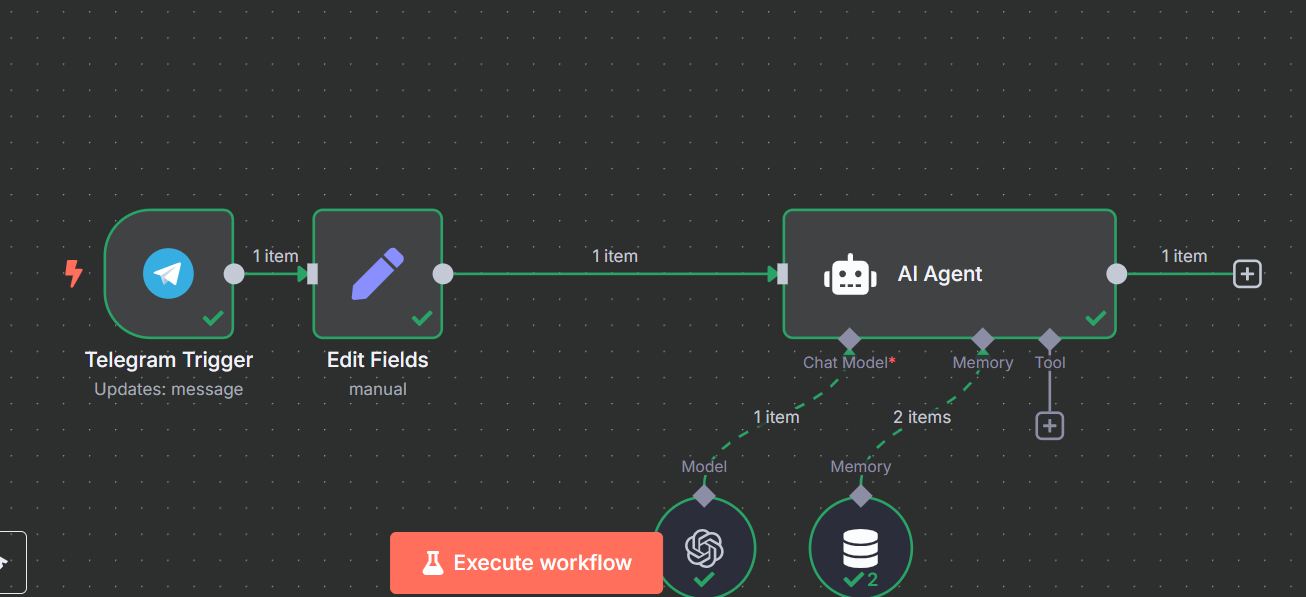 1. 같은 봇으로 여러개의 워크플로우를 활성화 시켜둘 수 없습니다 . 텔레그램에서 새로운 봇을 생성한 후 사용하세요.