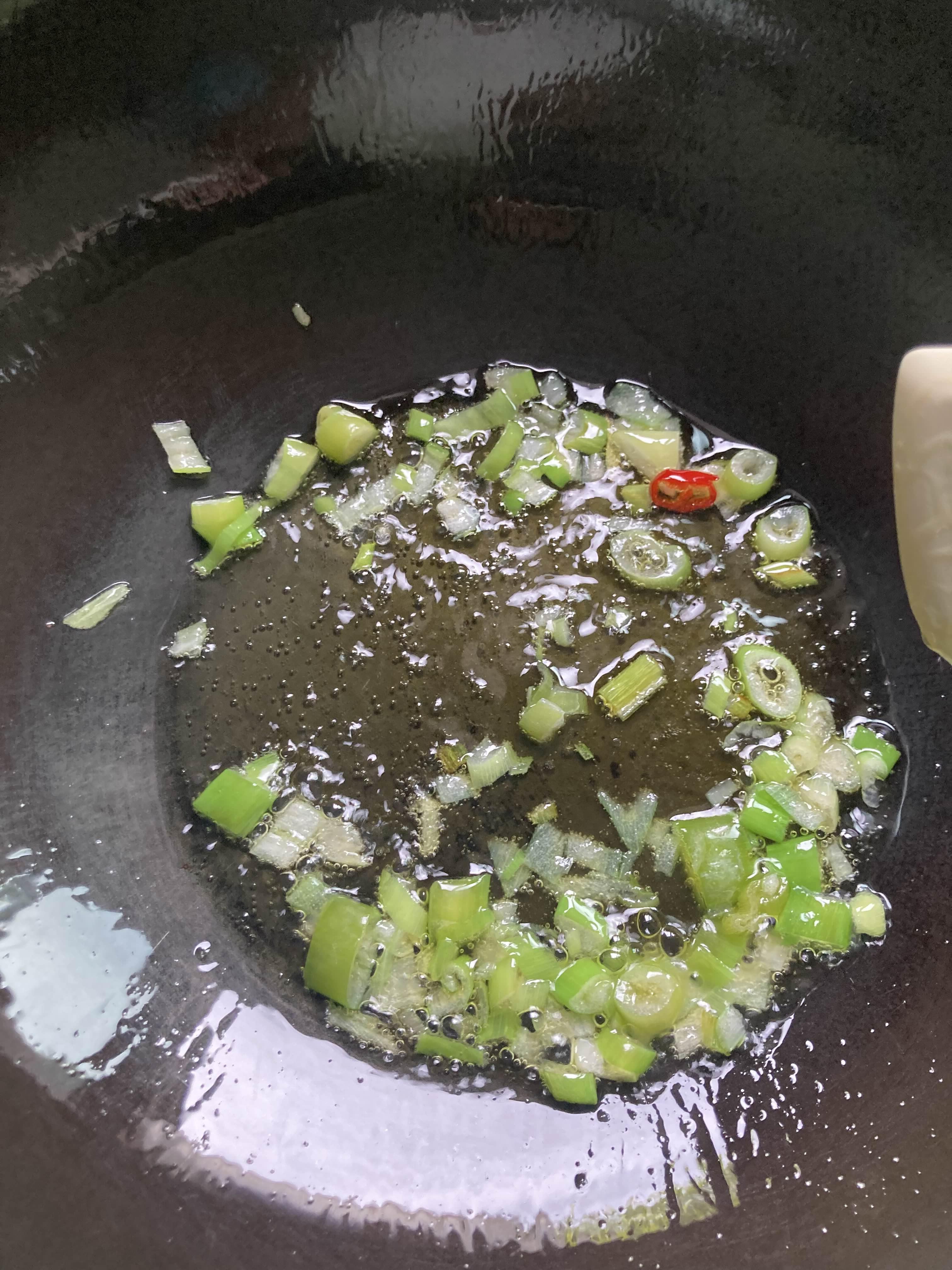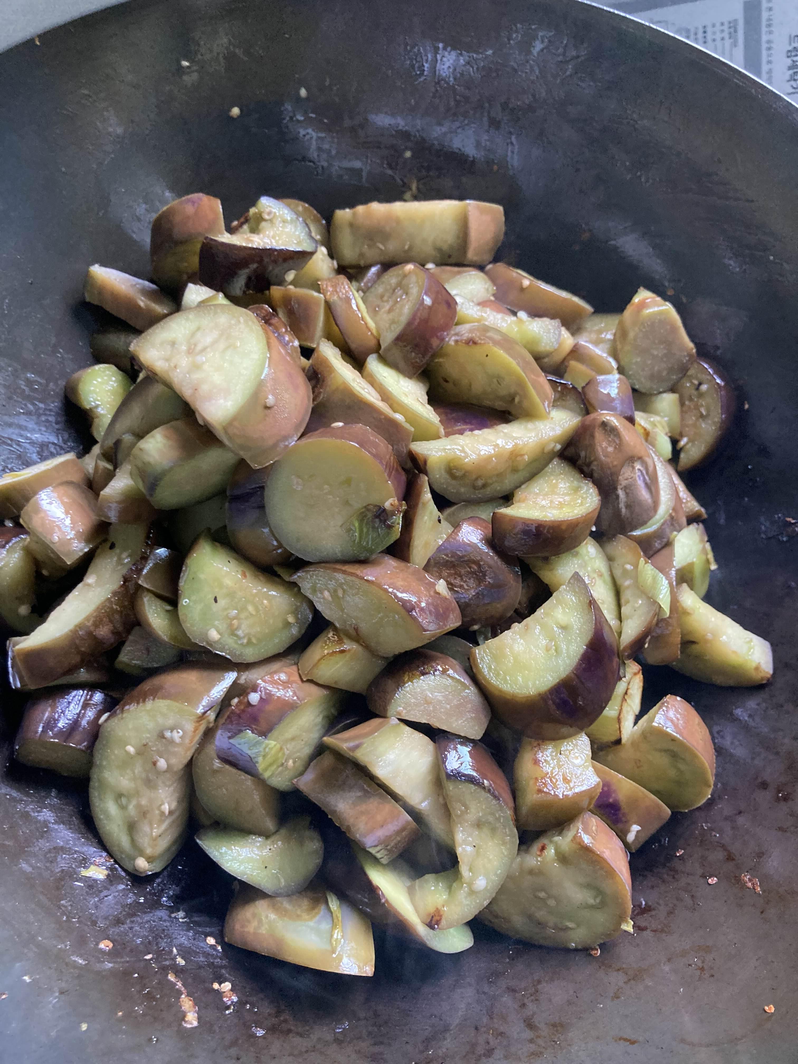 노릇하게 파가 익어갈 때 쯤 가지를 넣습니다.