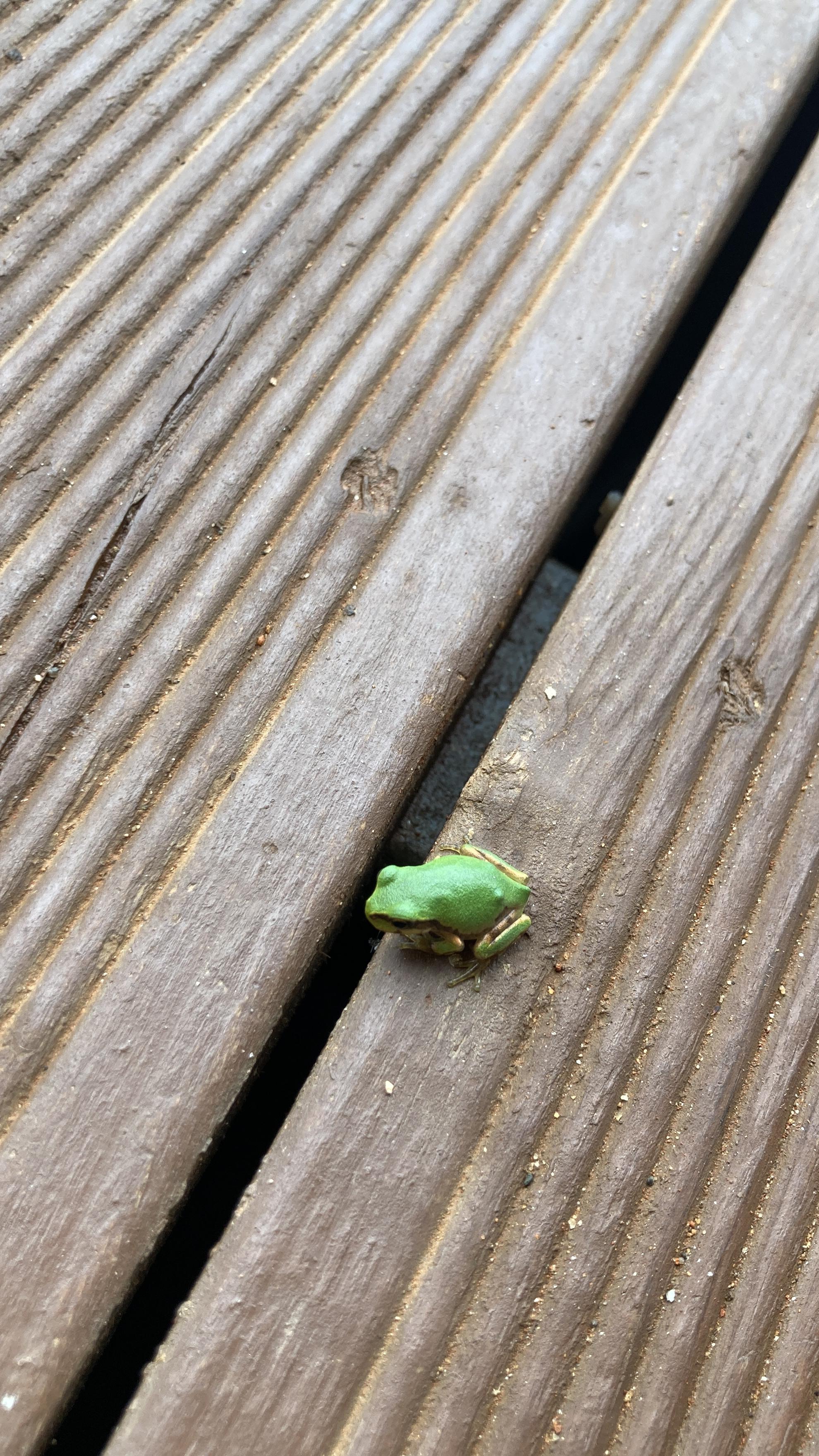 개구리가 몸 다 말이고 들어갔을 즈음 후다닥 들어왔습니다