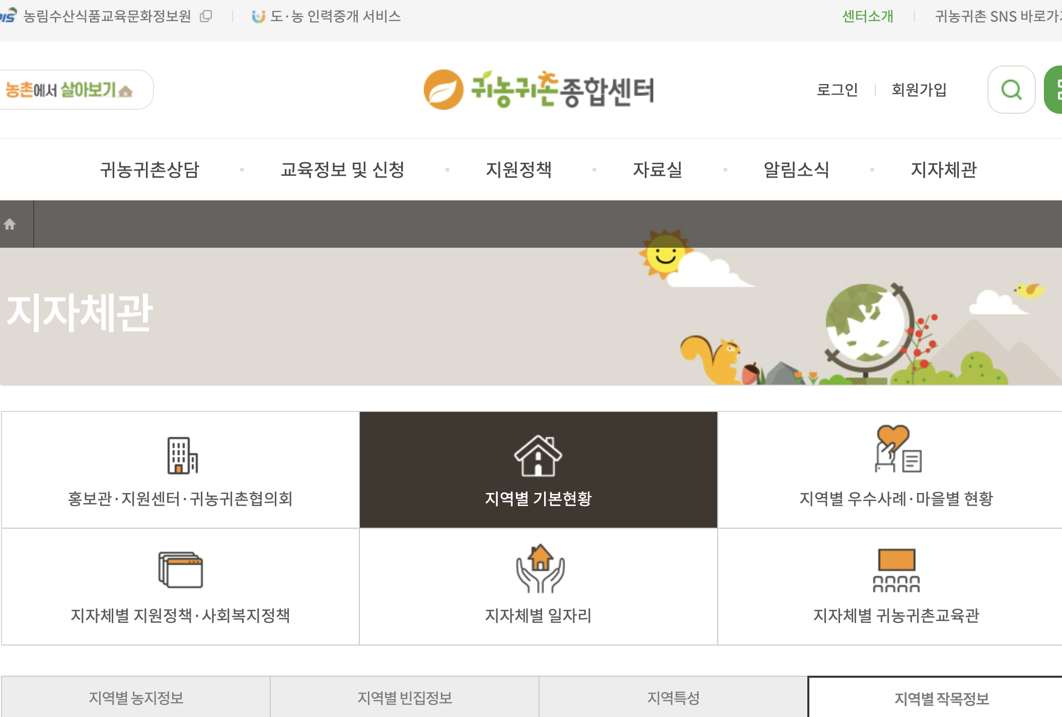 | 귀농귀촌 수 | '19년 기준 : (귀농) 162명 / 116가구, (귀촌) 945명 / 726가구 | |