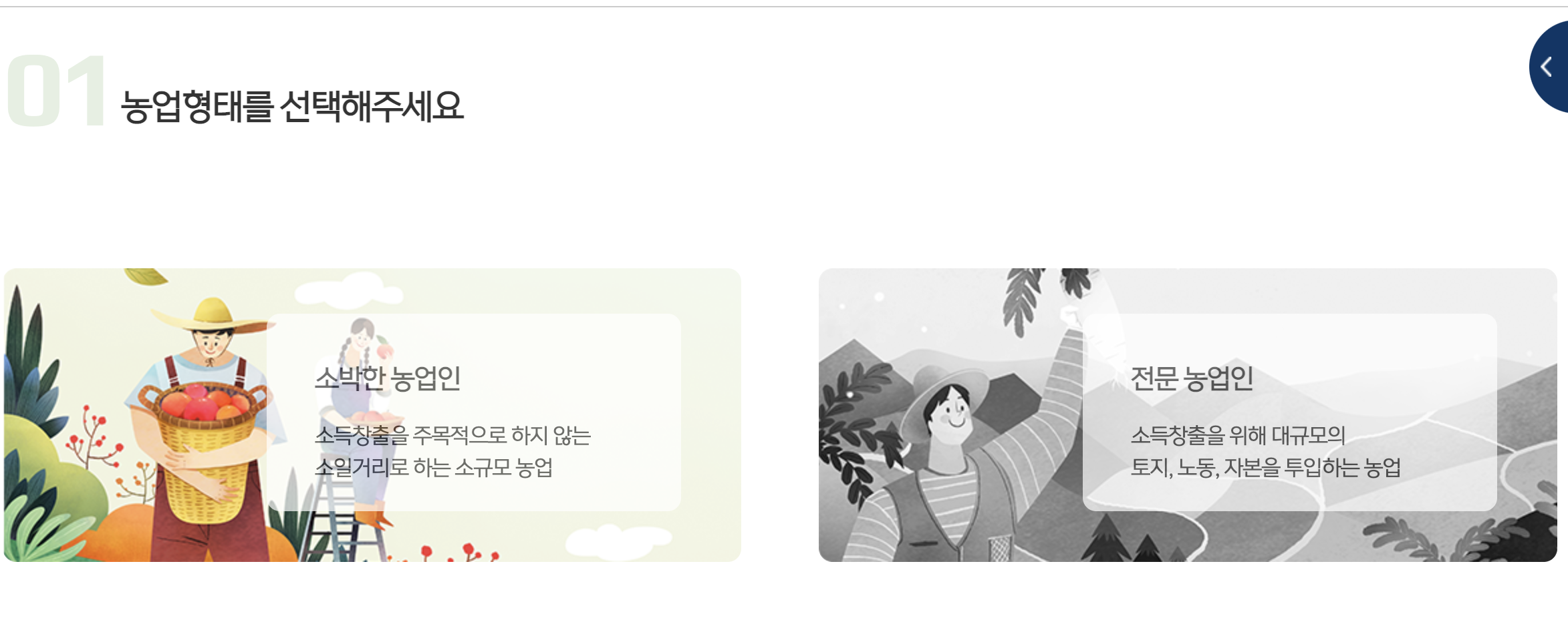 소박한 농업인의 형태를 목표로 하는지 전문 농업인을 목표로 하는지 선택합니다.