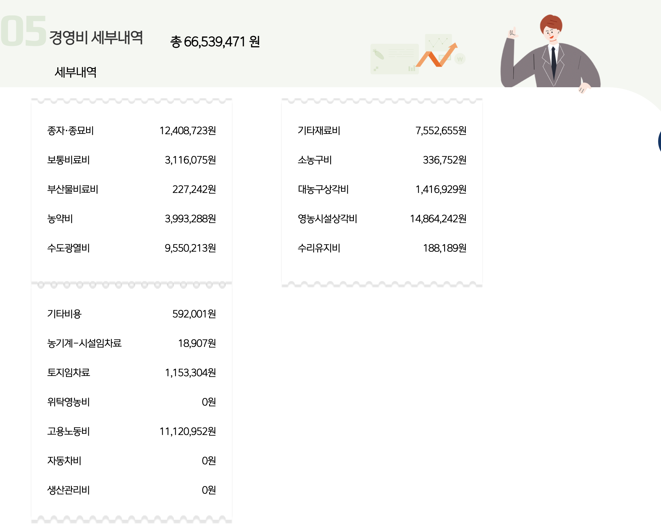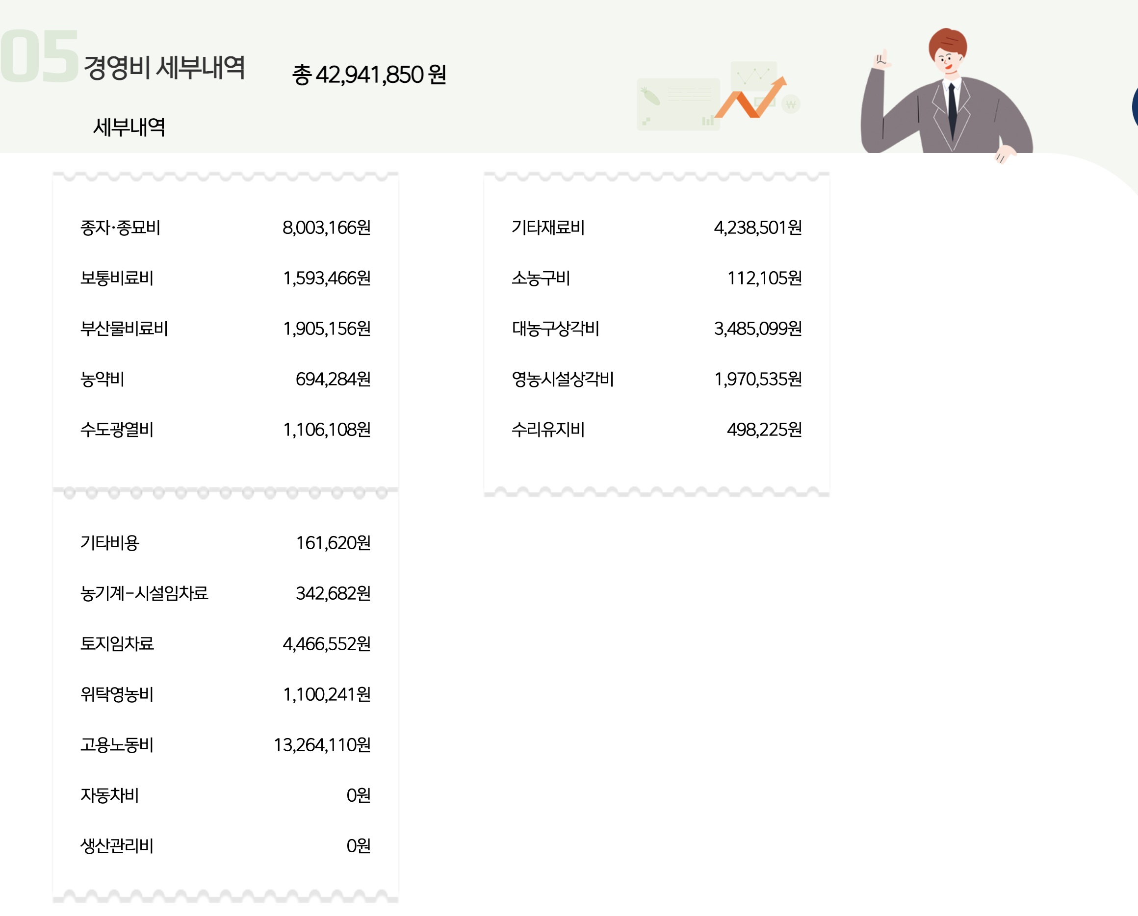 생각못했던 경영비의 세부내역을 그대로 활요해 예산을 계산해봐도 도움이 될 것 같습니다.