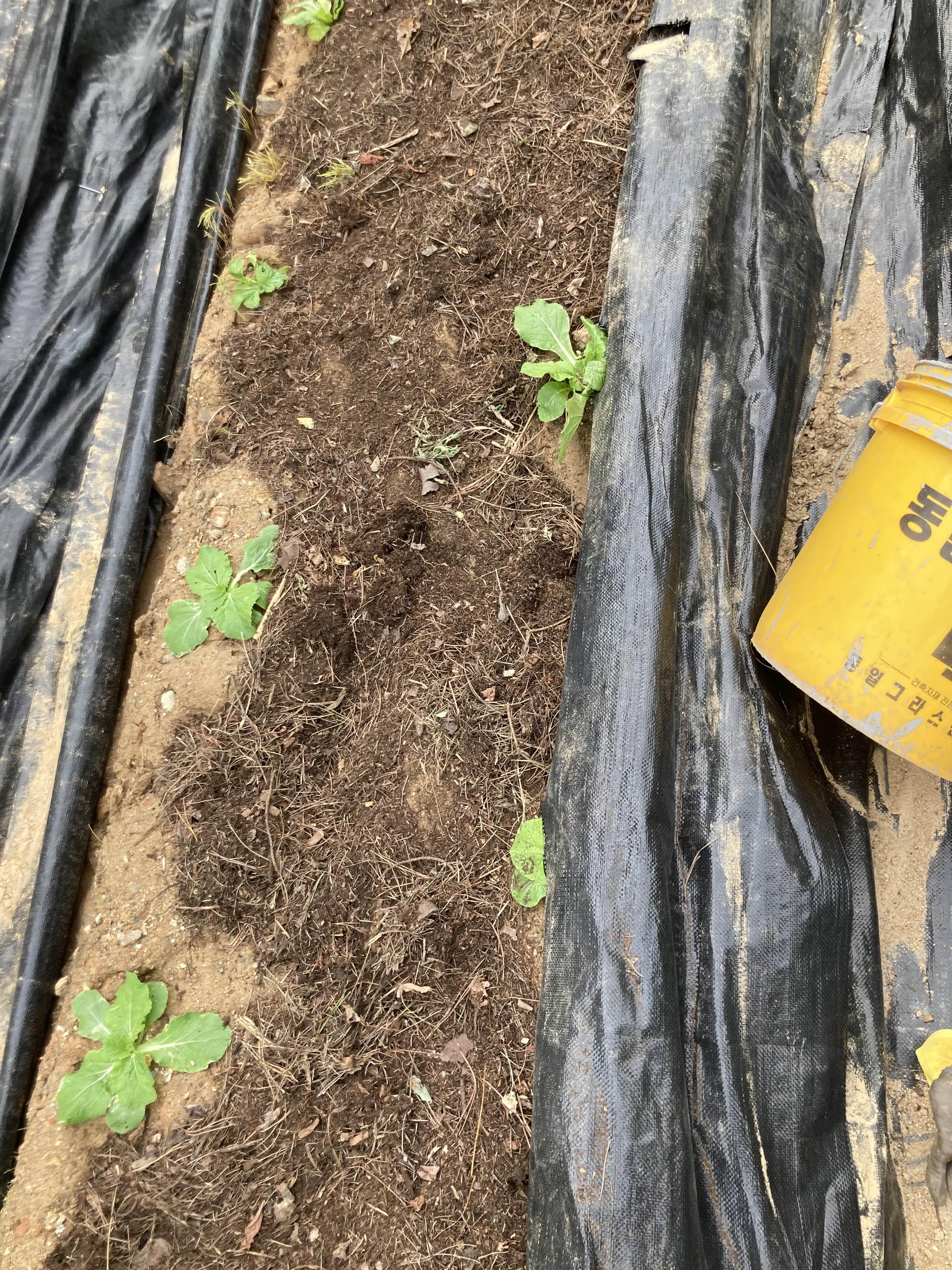 오늘은 뒷 배추두둑에 긁어온 부엽토를 덮어주었다