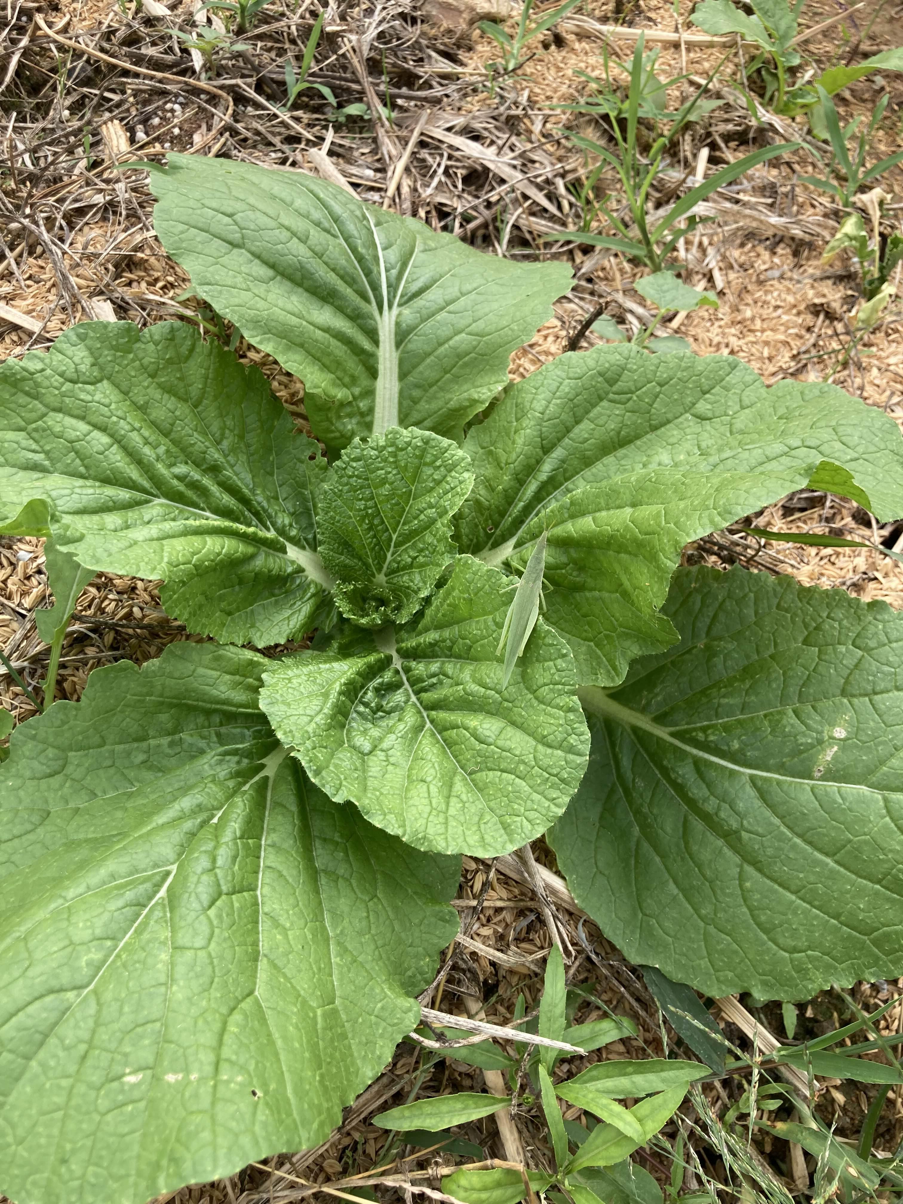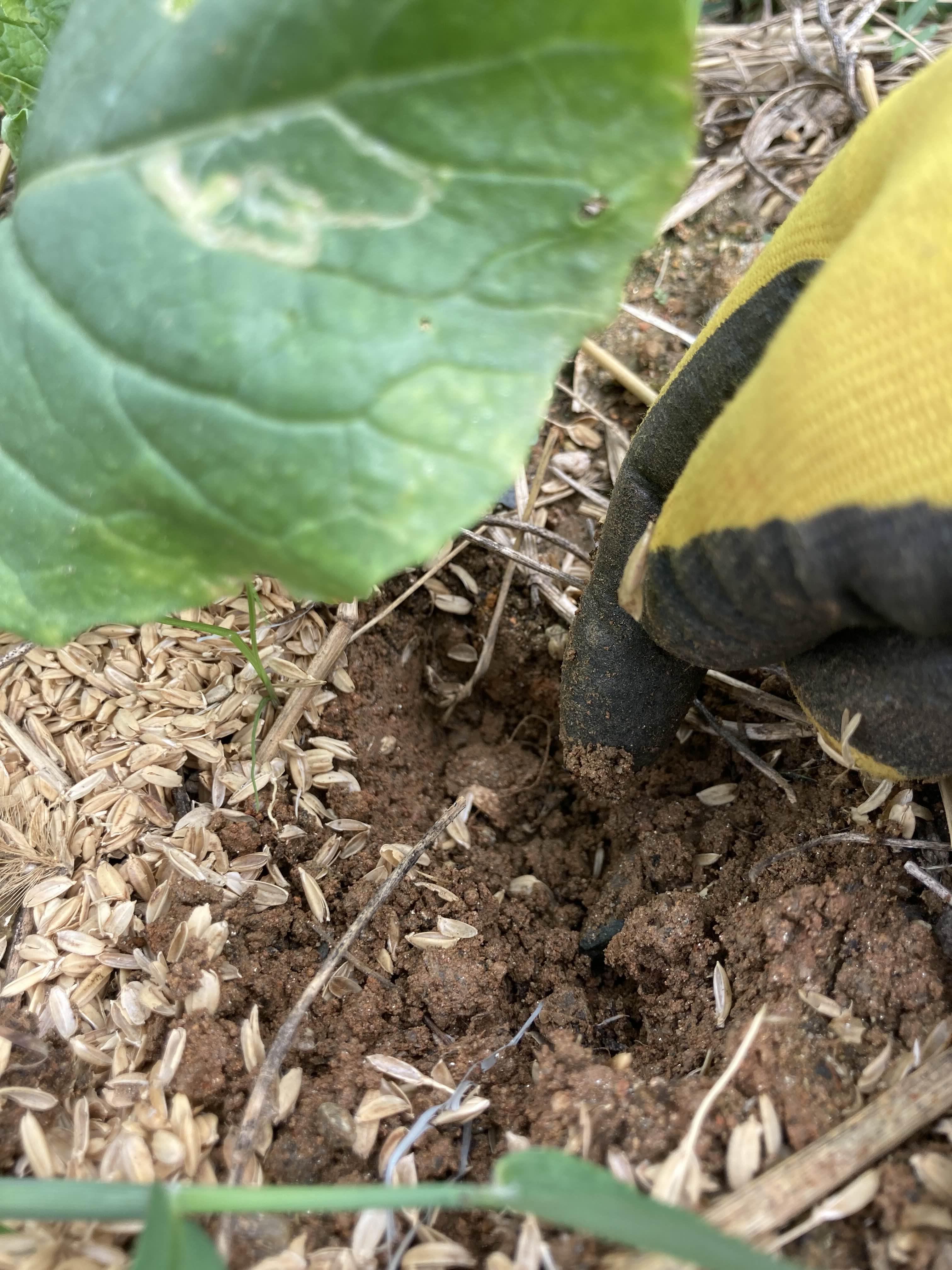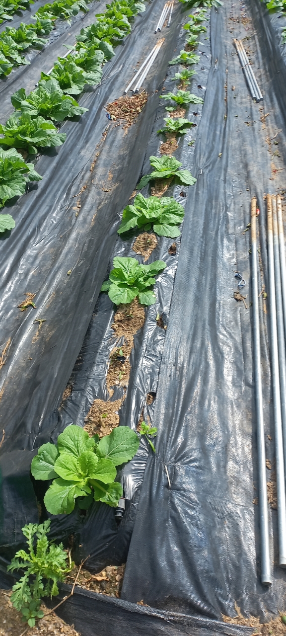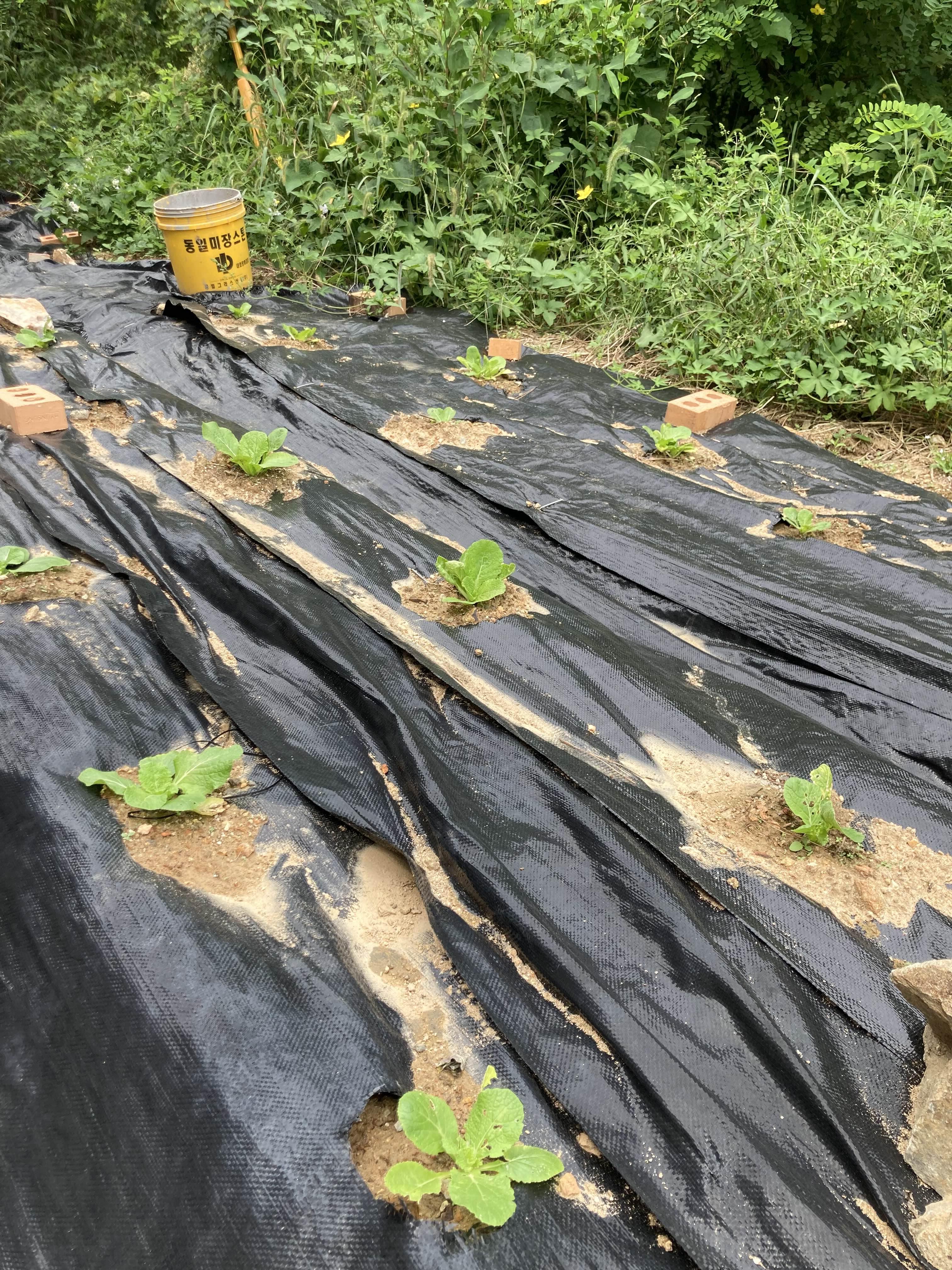 다른 밭에비해 생장이 너무 더뎌서 비닐을 걷고 부엽토를 위에 덮었다