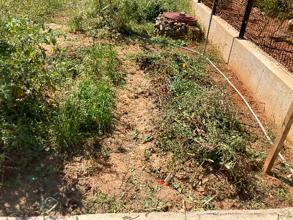 풀은 베어서 밭 위에 올려둔다.잘개 쪼개어서 올려두면 좋겠지만 토마토 대가 워낙 굵고 날이 더워 포기 ㅎㅎ